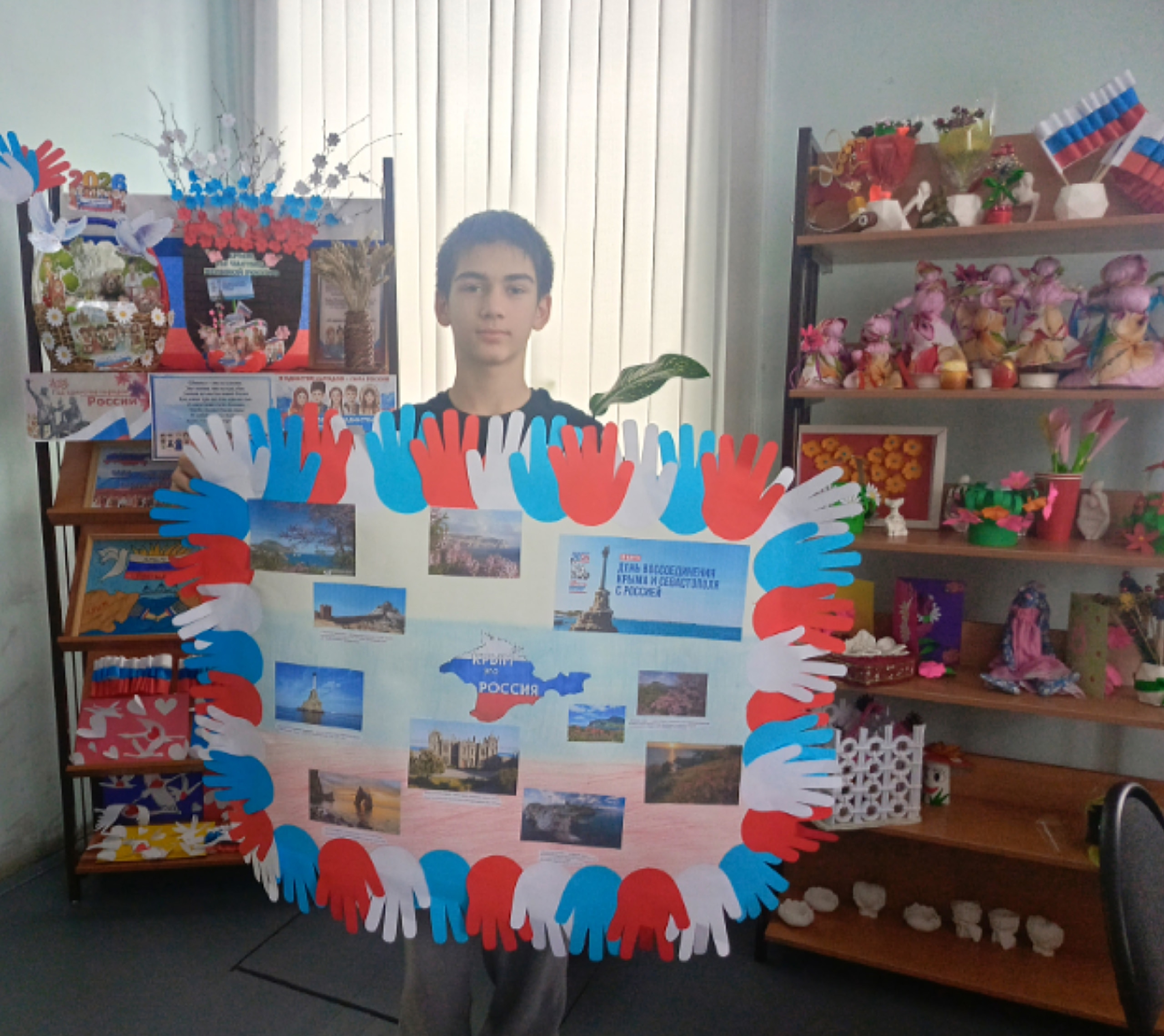 18 марта в Доме культуры села Томское в День воссоединения Крыма с Россией была оформлена выставка рисунков «Крым — Россия! Навеки вместе».